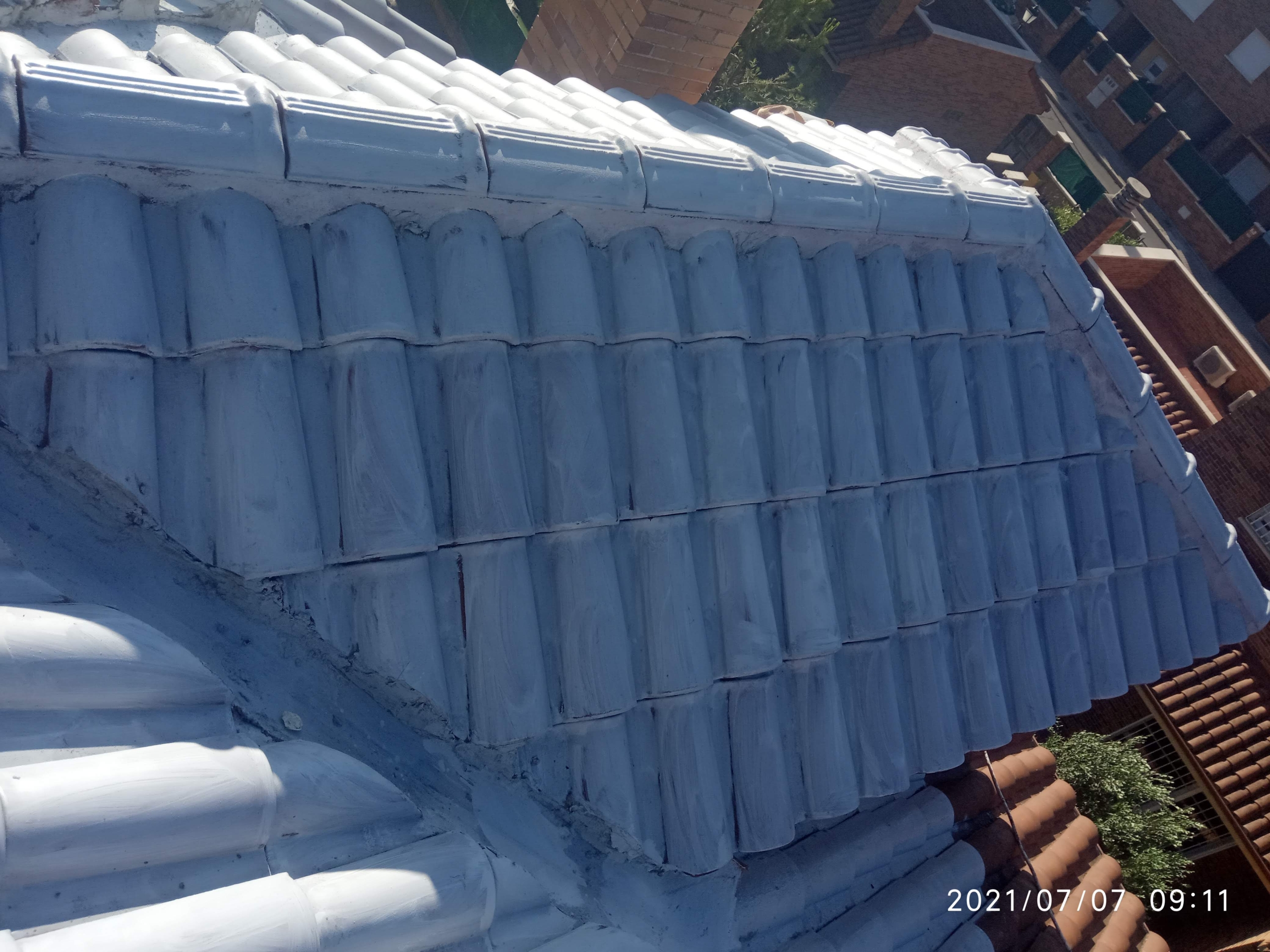 J/ Aplicando una cuarta mano del Impermeabilizante sobre el tejado de la vivienda, damos por finalizado el tratamiento de Impermeabilizar tejados antiguos.