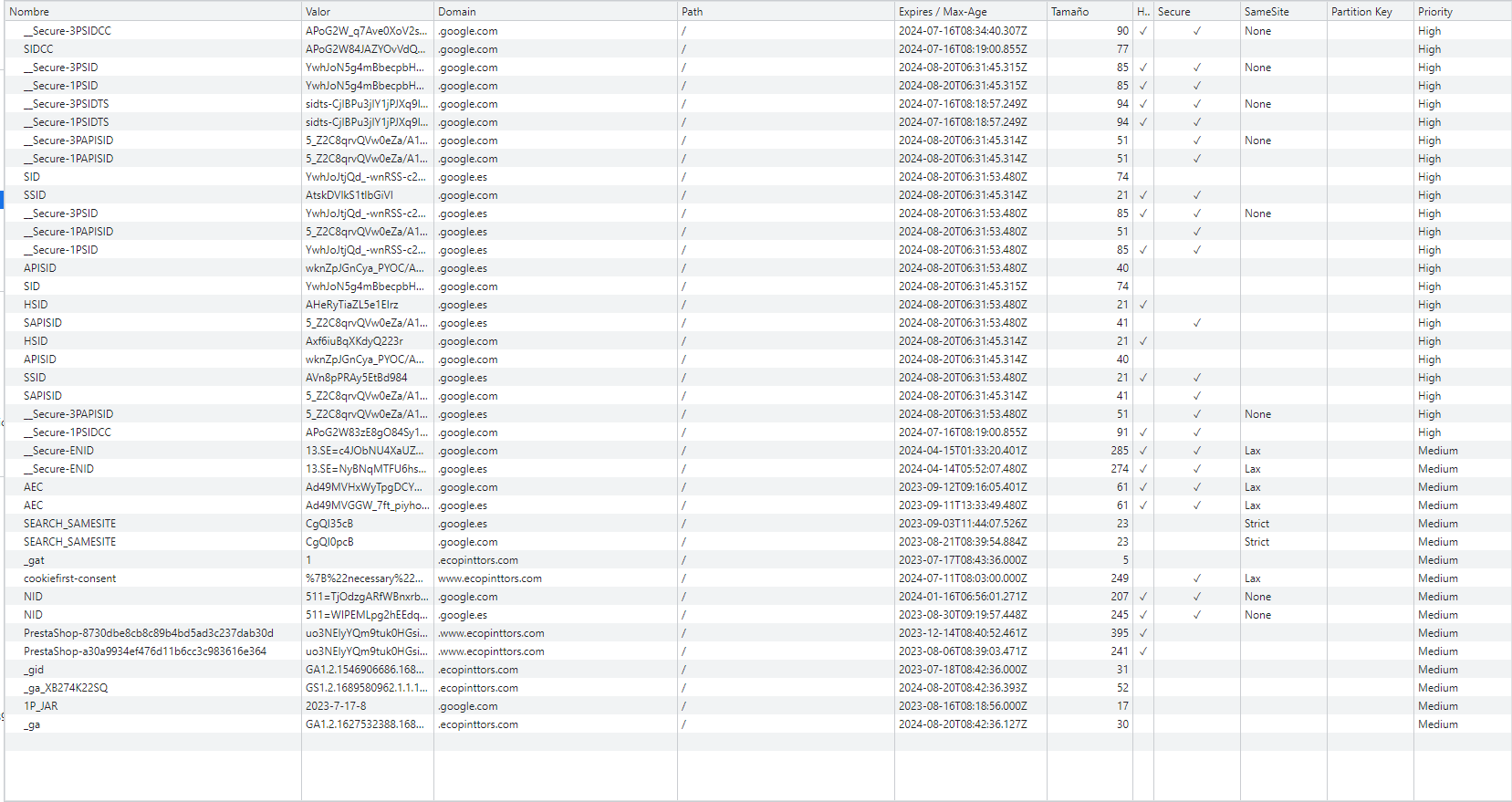 Temporalidad: Se indicará si es de sesión (desaparecen al terminar la sesión), o persistentes (en cuyo caso se indicará el tiempo de permanencia de la Cookie)